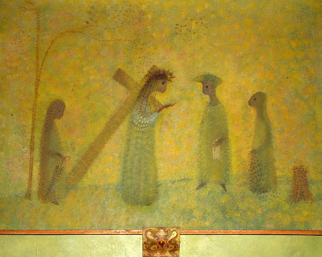 Ik bekeek ze nog eens, alle 16, op mijn computer. Op elk van hen zie ik wel iets bijzonders, maar waar ik iets bij voel is vooral nummer 9. Wat gebeurt daar? Ik weet waar de afbeelding voor staat: Jezus, die de vrouwen toespreekt; een van de scènes uit het lijdensverhaal.